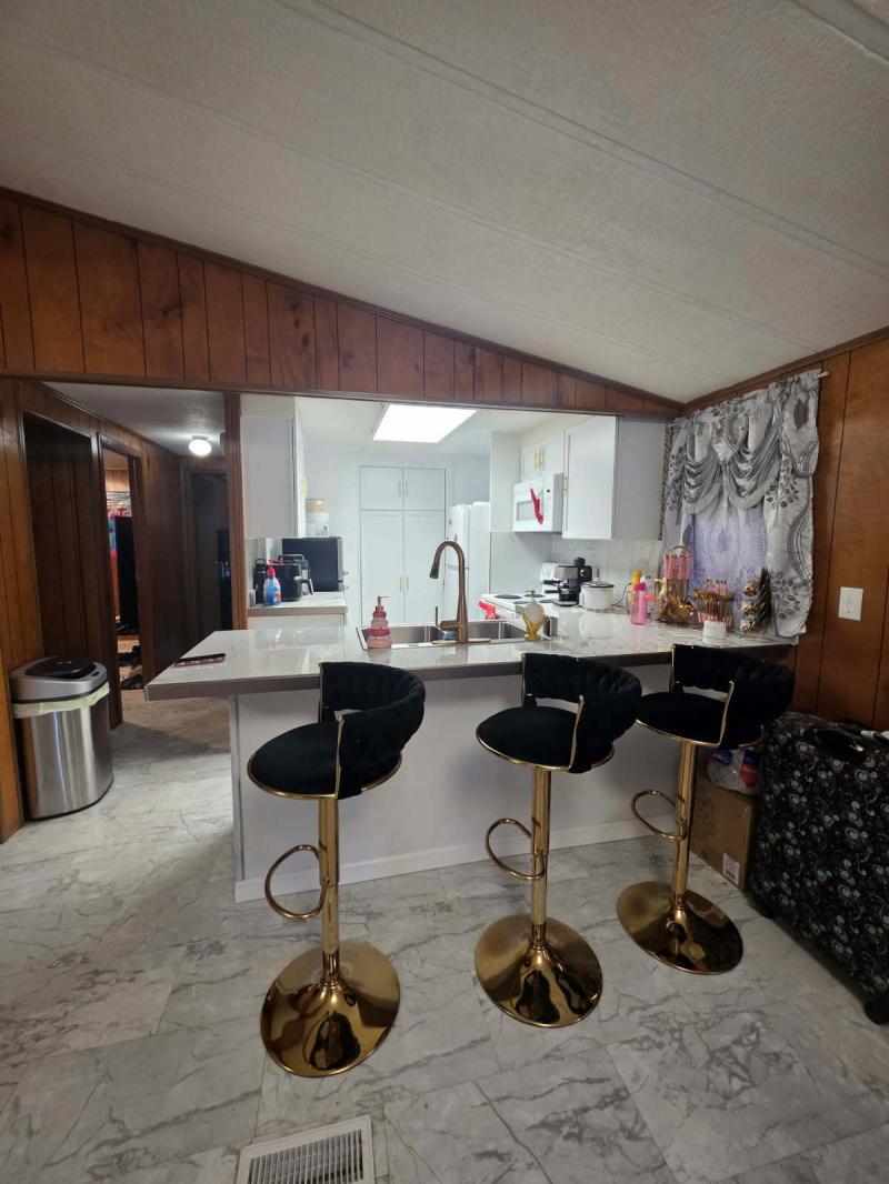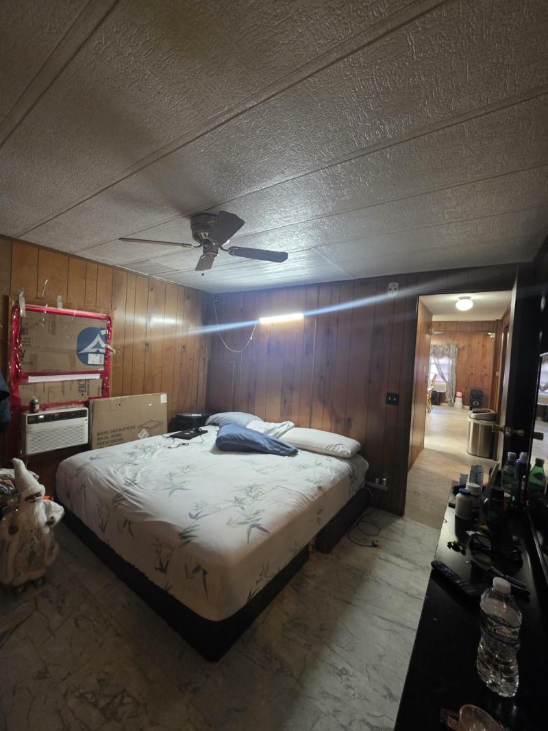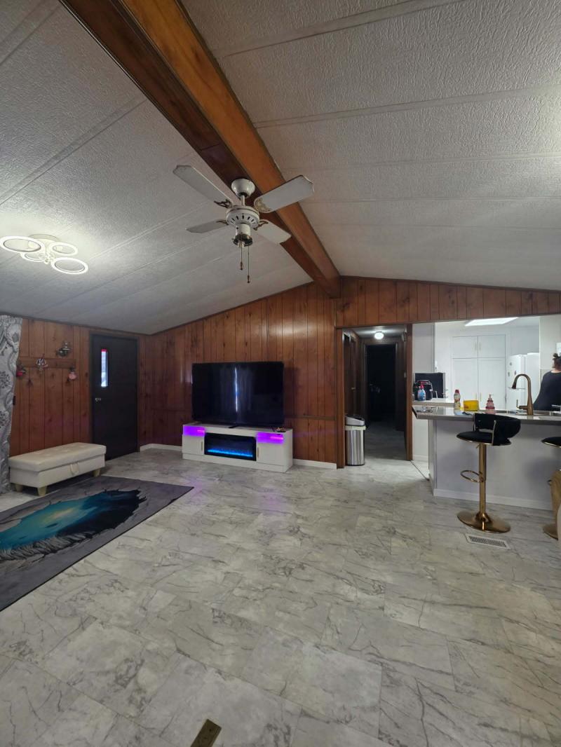 This double wide two-bedroom, two bath house has high ceiling and it is located on the outside loop in the Village Estates. This home comes with the stove, 2 refrigerators, washer, dryer, 3 brand new A/C window, microwave, fireplace tv stand, big screen tv, L shaped sofas ,ottoman, coffee expresso machine, 6 chair dining table, Coffee table, end table, 3 bar stools, air fryer, pressure cooking, and 2 ceiling fans. Water heater is 6 months old, floors are semi new, kitchen was remodeled. This home also comes with a shed to provide you with extra storage. Seller is open to offers and looking to sell home asap.